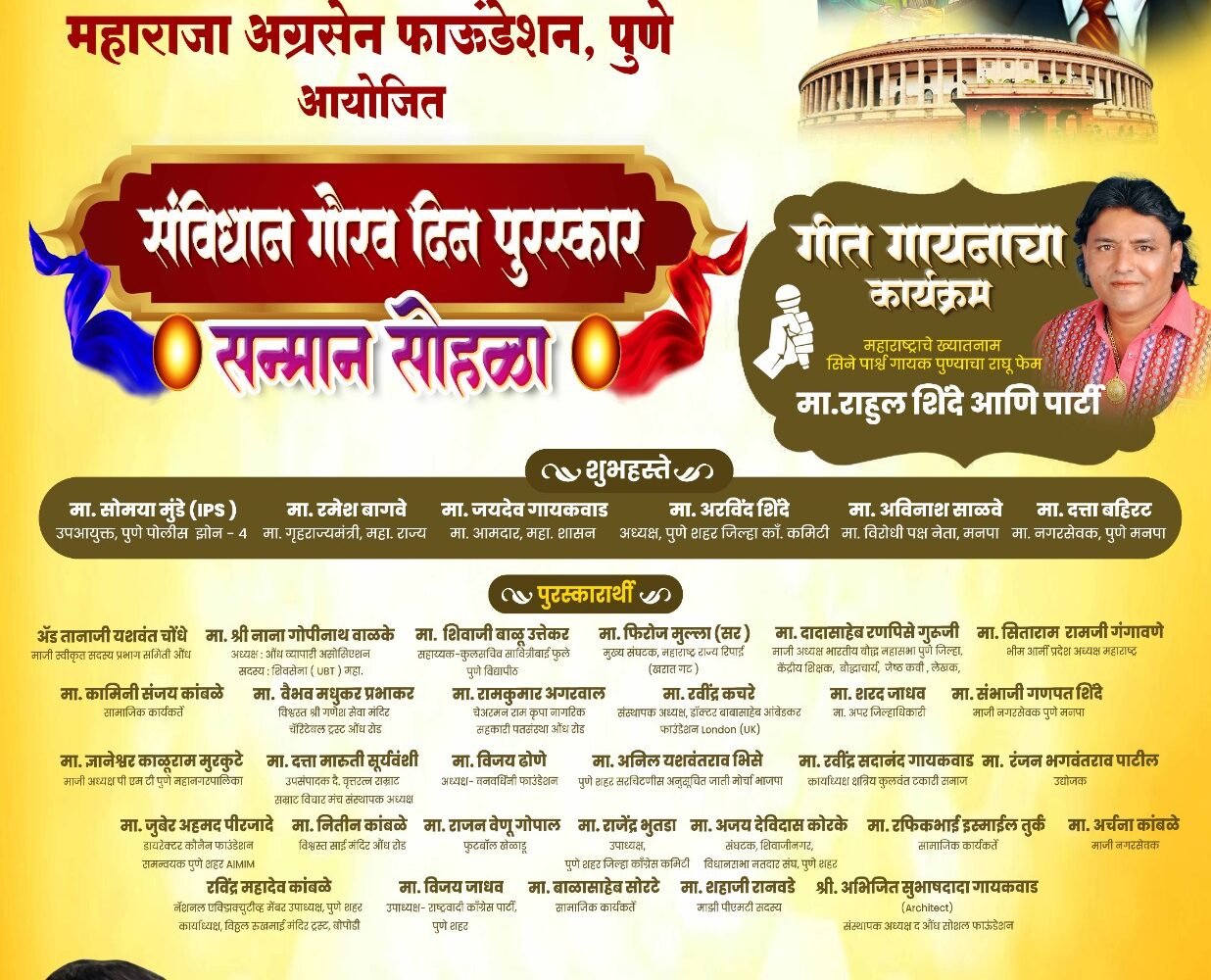 पुणे शहरात संविधान दिनानिमित्त होणारा हा सन्मान सोहळा समाजातील विविध घटकांना प्रेरणादायी ठरणार आहे.