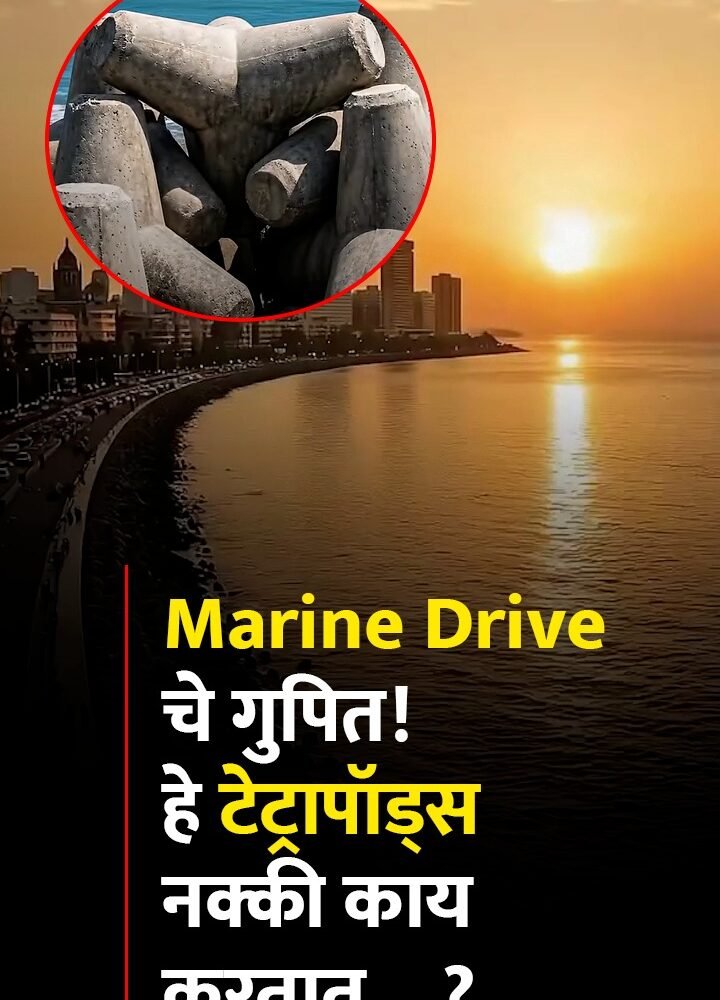 या ब्लॉक्सना “टेट्रापॉड्स” म्हणतात. समुद्राच्या मोठ्या आणि जोरदार लाटांपासून मुंबईला वाचवण्यासाठी ते खास बनवले गेले आहेत. त्यांचा आकार थोडा वेगळा असतो… चार पायांसारखा.