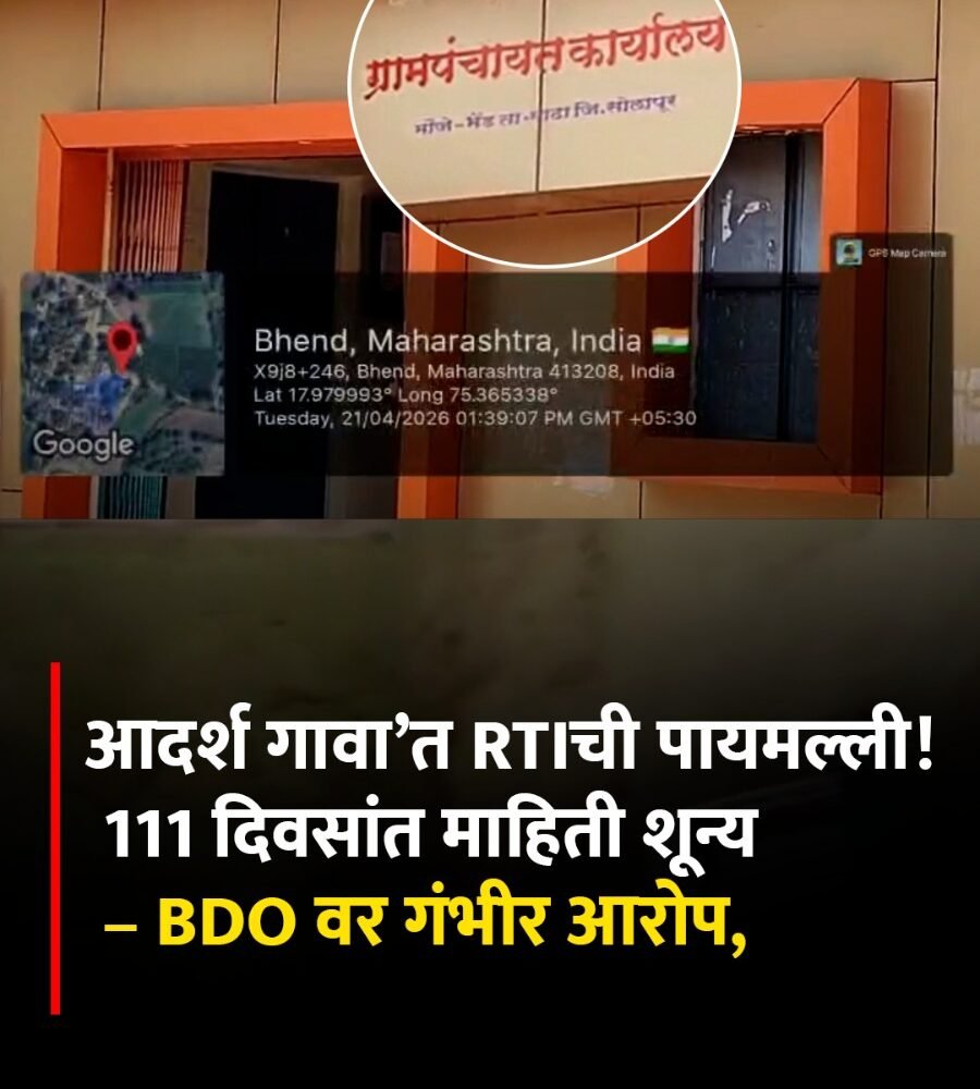 सोलापूर जिल्ह्यातील माढा तालुक्यातील भेंड या ‘आदर्श गाव’ातून एक धक्कादायक प्रकार समोर आला आहे. माहिती अधिकार कायद्याची उघडपणे पायमल्ली होत असल्याचा आरोप करण्यात आला आहे.