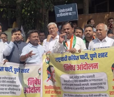 October 4, 20230 कंत्राटदारांच्या सेवेसाठी काम करणारे ट्रिपल इंजिन सरकार – प्रशांत जगताप पुण्यात राष्ट्रवादी काँग्रेस शरद पवार गटाची निदर्शने पुणे (प्रतिनिधी ) स्वतःला ट्रीपल इंजिन म्हणवून घेणारे म Read More